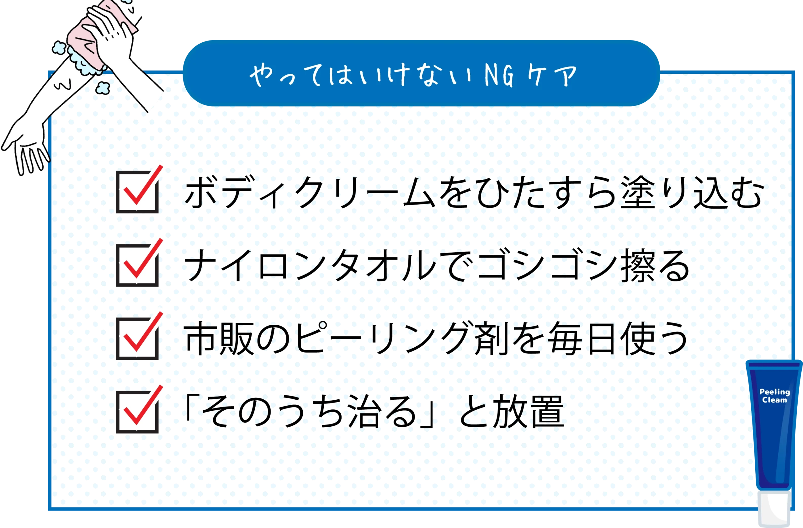 二の腕のぶつぶつに悩む方がやってしまいがちなのが、次のようなケアです。