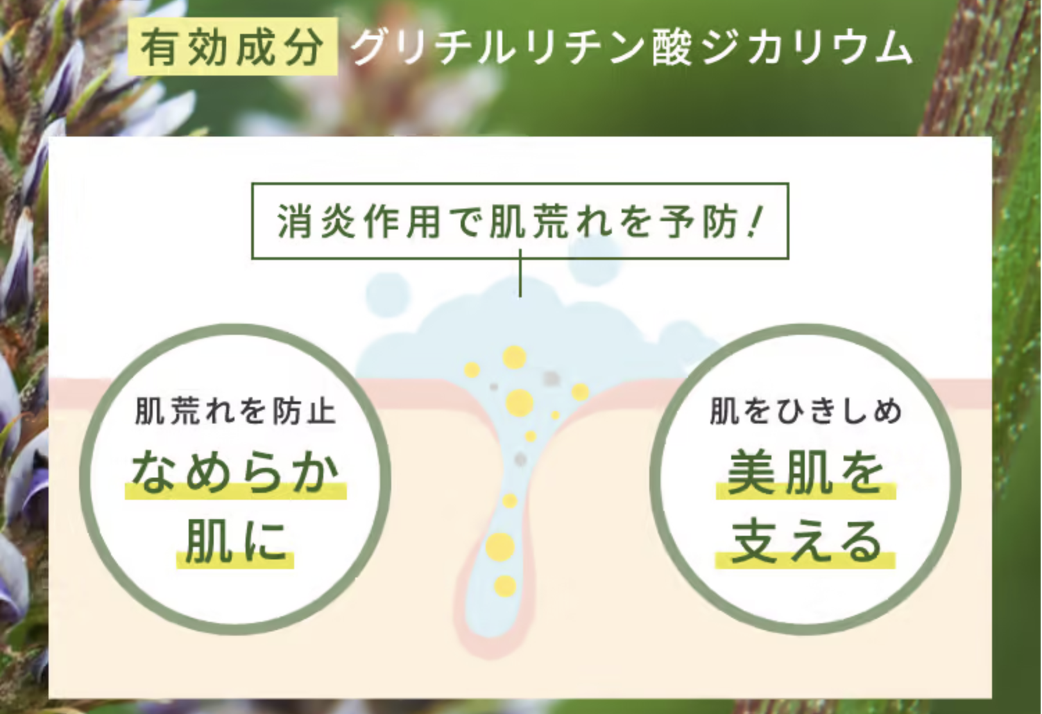 グリチルリチン酸ジカリウム…肌荒れ・ニキビを防ぐ