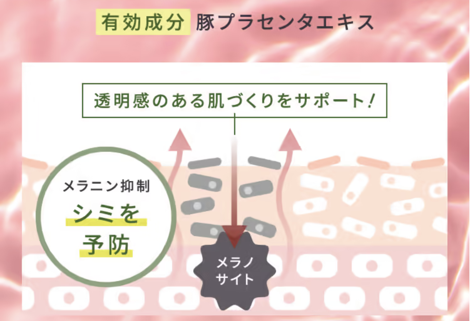 豚プラセンタエキス…メラニンの生成を抑え、シミ・そばかすを防ぐ